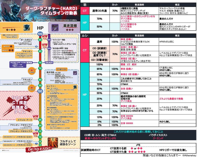 鶏さん On Twitter 簡略版ルシファーhl行動表仮 Ver 4 0 出来ました 改善内容 縦表示に変更 要望があった為 羽優先撃破ルートにした為 羽生存時の本体トリガー行動 無神論 などの撤廃 赫羽付与を目視で確認できるように変更 その為微細な修正 未